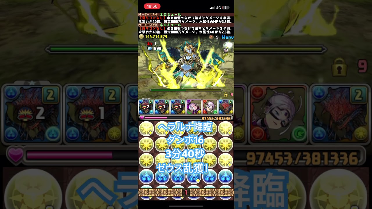 ヘラルナ降臨 3分40秒 ゼウスアバたま集め! #パズドラ #周回