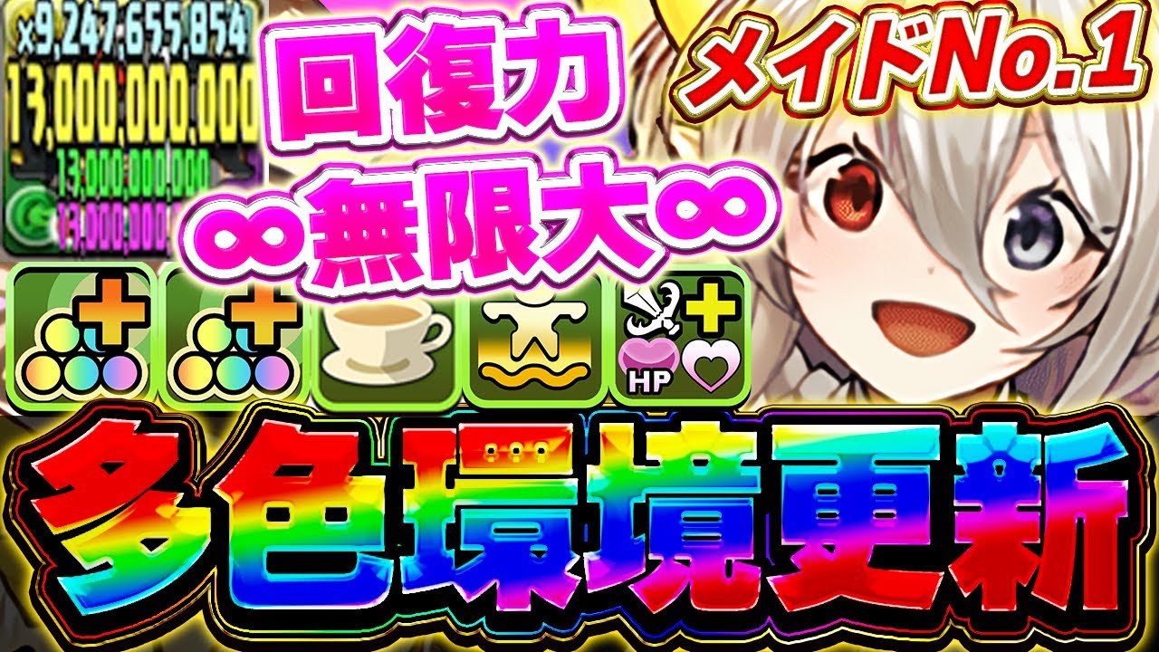 片側350倍火力!!多色のぶっ壊れ最強リーダー!!メイドイデアルが回復力もバグりすぎて強すぎる!!【メイドイベント】【パズドラ実況】#パズドラ