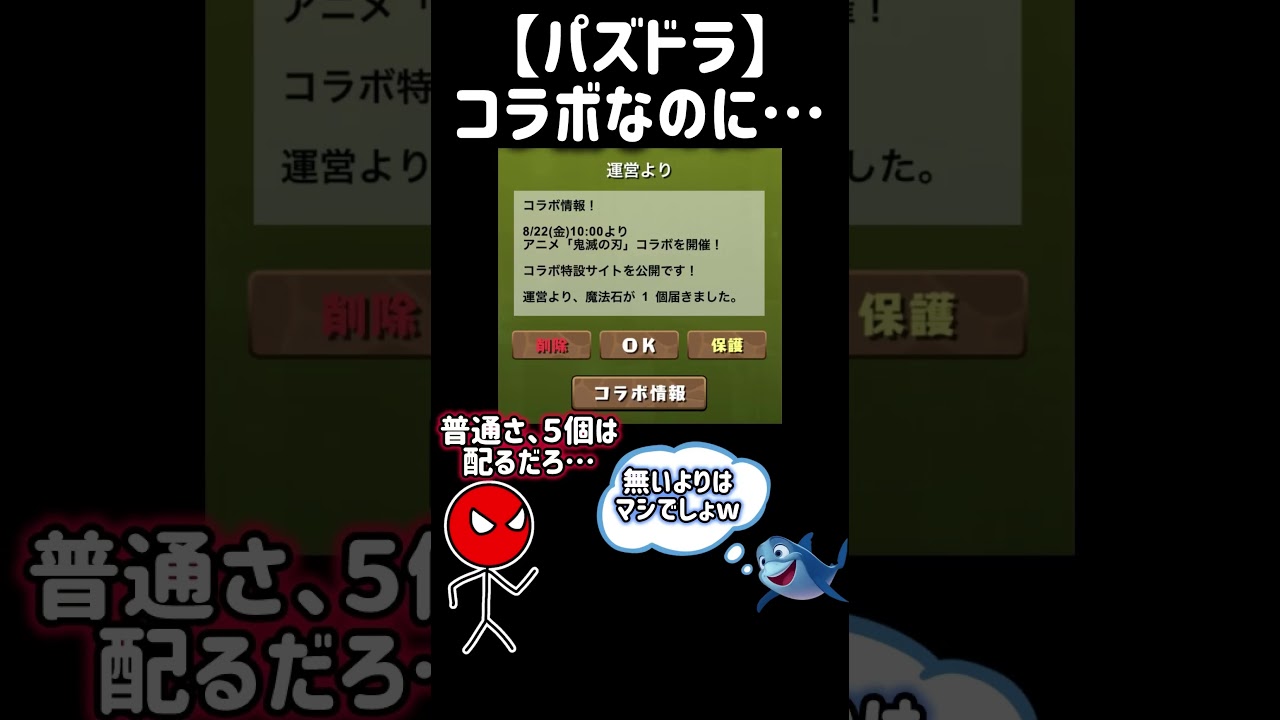 【パズドラ】魔法石1個⁉️コラボなのにケチな運営… #パズドラ #パズルドラゴンズ #魔法石 #サメミーム #怖がらせましょう #ぼうにんまん