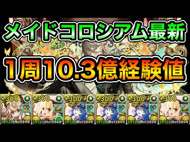 【パズドラ】最新版!1周10.3億経験値!執事とメイドのコロシアム!奉仕の心!ダンボ6!1周5分台!サレーネ×リィ×サレーネ編成でランク上げ周回!【概要欄に詳細など記載】